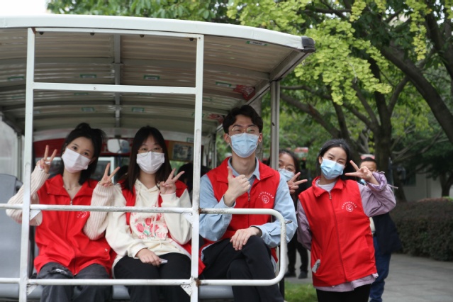 为帮助新生将行李运送到宿舍,后勤服务总公司准备了校车、校园摆渡车随时免费接送有乘车需要的新生,并特别增加了环校绕行的专线。“我是从早上七点十五开始准备的,按学校要求统一佩戴了手套并做好防疫措施,主要负责带领同学到目的地和搬运行李上下车。”外国语学院的王李群是摆渡车志愿者中的一员。这已经是她第二次参与志愿迎新了,对比上一年,她感觉学校的安排更加合理了,有环线绕行,有直达的,为新生提供了更好的便利。