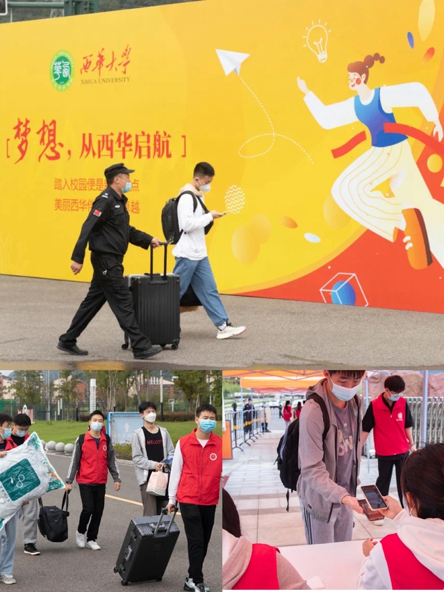 10月5日,迎着秋风,伴着初秋的桂花香,学校终于迎来了第一批返(到)学生,来自五湖四海的学子们满怀着憧憬踏进了期待已久的西华校园,开启了人生新征程。到校同学全程“无接触报到”,线上线下双管齐下,热情又高效,简约而不简单。当天,宜宾校区和彭州校区的新生也来到美丽的校园报到。