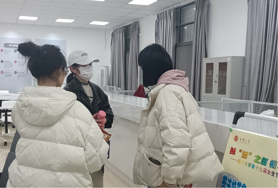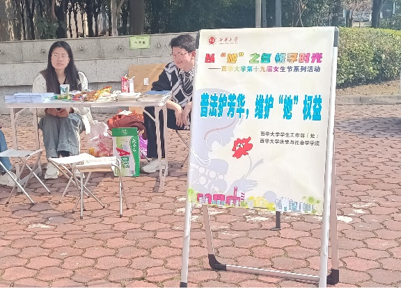 3月15日,学生工作部与法学与社会学学院联合举办了“普法护芳华,维护‘她’权益”的普法活动。活动现场,志愿者们向同学们讲解发放《中华人民共和国妇女权益保障法》并设计了互动问答游戏,为参与答题的同学送出精美小礼品。