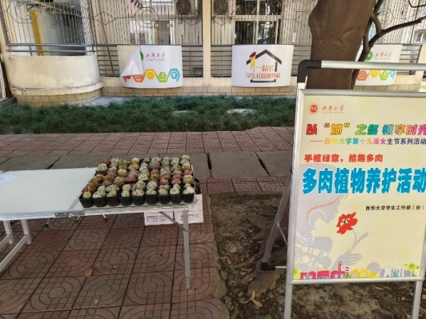 3月13日,学生社区管理委员会的志愿者们在锦地苑、临江苑、德馨苑“一站式”学生社区内举办了主题为“手植绿意,拾趣多肉”的多肉植物养护活动。活动现场志愿者们热情地为同学们介绍多肉植物的浇水、施肥、防虫等养护知识,学习完毕后同学们登记领取了一盆属于自己的多肉植物。