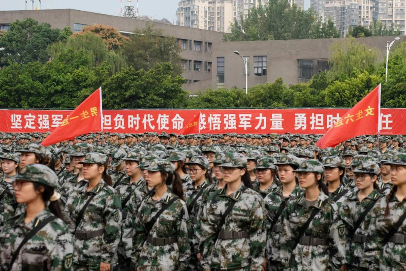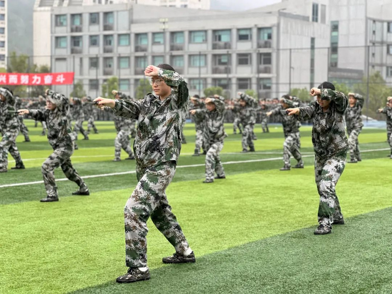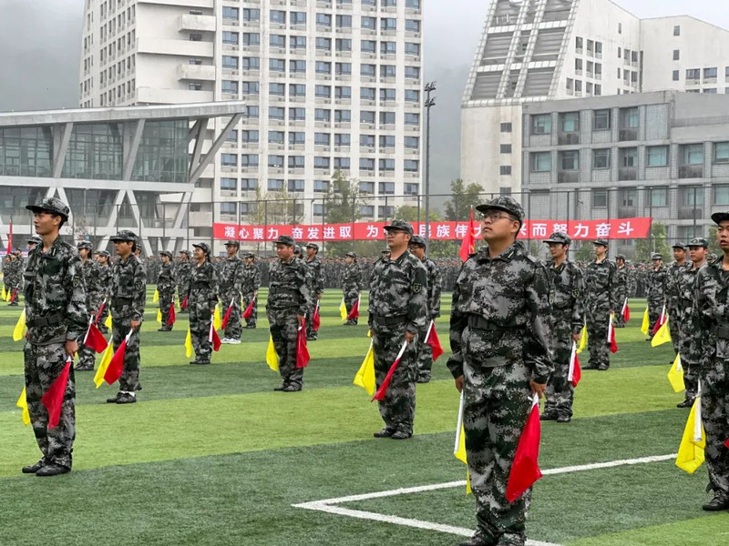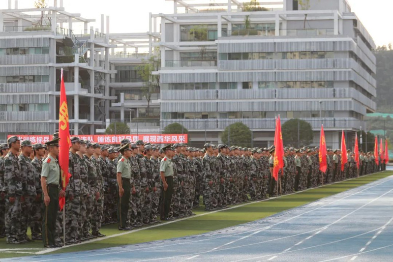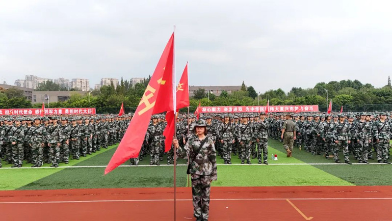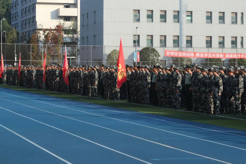 本次军训采用全场景作训,拓展训练科目,新增模拟射击系统、徒步拉练等项目,学生沉浸式体验军营生活;瞄准新时代大学生成长规律和思想特点,紧盯思想政治教育现实需求,将应急救护教学、军事理论教学、国防知识教育、整理内务等内容纳入新生军训科目,并开展反诈主题教育及形式多样的国防教育活动,在军训过程中向学子普及国防知识、培塑爱国情怀,凝聚起关心国防、奋斗强国的青春力量。