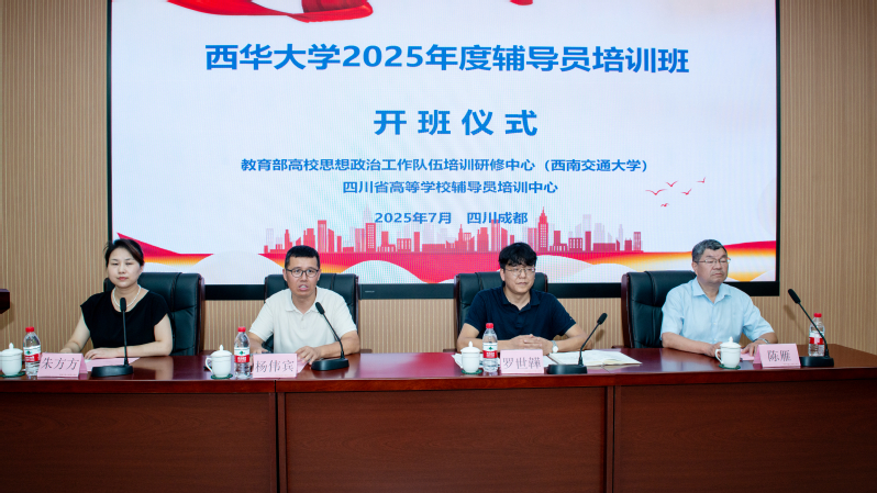 7月9日上午,党委学生工作部部长罗世韡、副部长陈雁、教育部高校思想政治工作队伍培训研修中心(西南交通大学)副主任杨伟宾及全体学员出席开班仪式,仪式由研修中心办公室主任朱方方主持。开班仪式上,杨伟宾代表研修中心致欢迎词并希望大家学习愉快、学有所获。党委学生工作部部长罗世韡讲话时强调,学校一直以来高度重视辅导员队伍建设,积极为辅导员成长搭建平台、提供保障、拓展空间,希望老师们珍惜学习机会,做到学思践悟、知行合一。西华学院辅导员陈思雨代表全体学员表态发言,以“空杯心态”投入学习、以“靶向思维”破解难题、以“严实作风”遵守纪律、以“转化意识”对接实践,努力把学习成果转化为谋划工作的思路、破解难题的举措、服务学生的本领。
