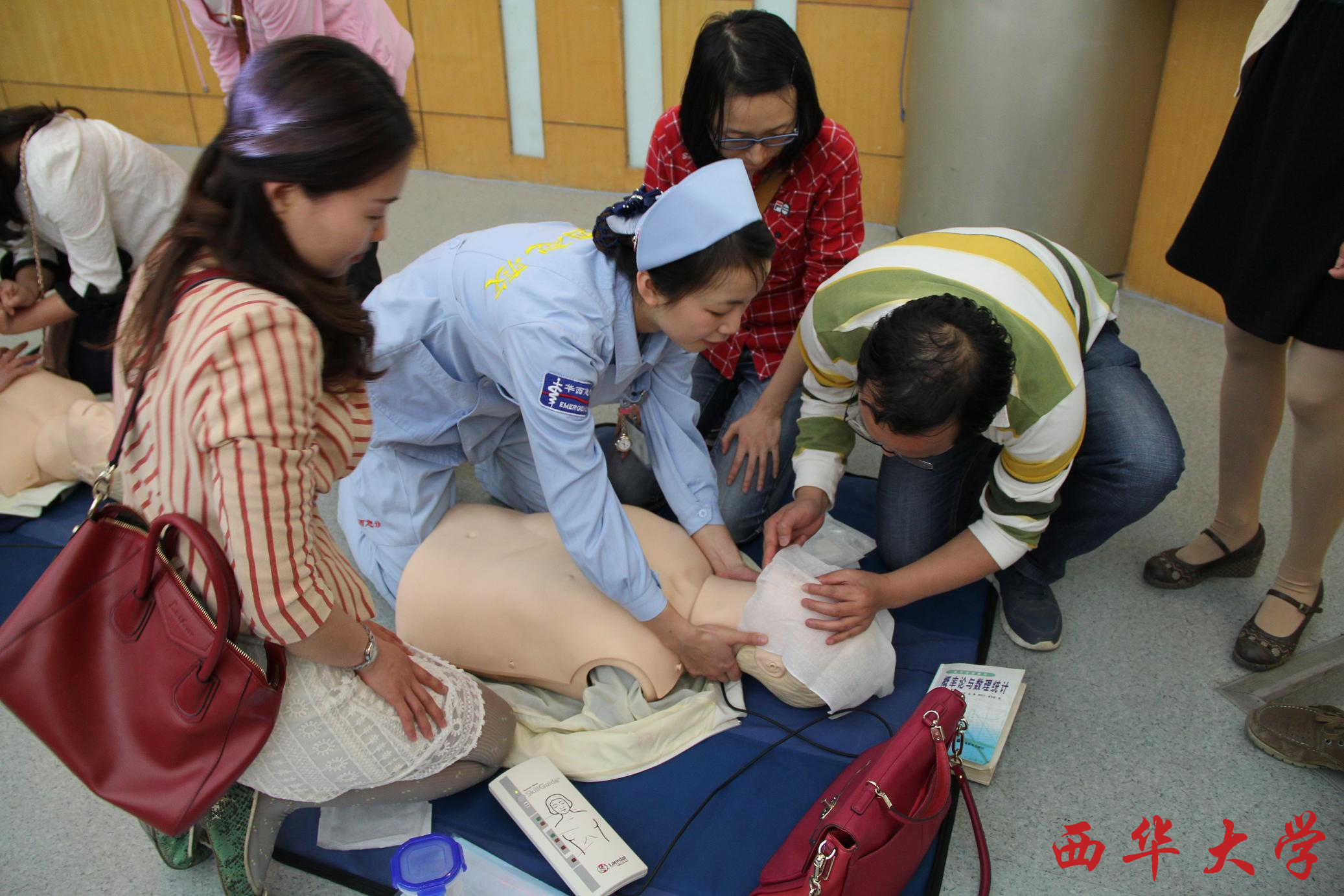 | 为普及急救知识,提高急救技能, 在培训会上,专家通过PPT、视频、问答等方式,结合生活实际讲解了心肺复苏的基本急救知识,同时,现场演示心肺复苏技能的操作流程、操作要点及注意事项。在培训实践操作环节,我校师生踊跃上台,积极参与心肺复苏技能实践操作。 培训会后,有同学表示,本次技能培训操作流程清晰,操作性强,容易记忆,经过培训,又掌握了一项在他人危难时刻,可以帮助他人的实用技能。