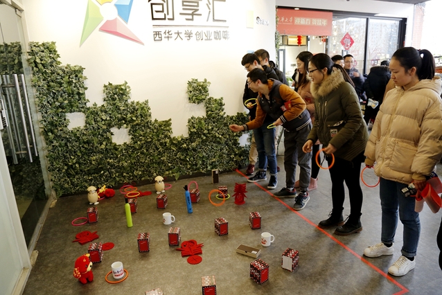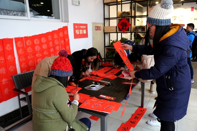 上午10时,创业咖啡厅内张灯结彩,喜气洋洋,校党委副书记王小林,党政办、宣传部、学生工作部、校团委、教务处、后勤服务总公司相关负责人和学院分管学生工作的书记(副书记)欢聚一堂,与留校同学一起猜灯谜、摸福字、写春联,共迎新春佳节。