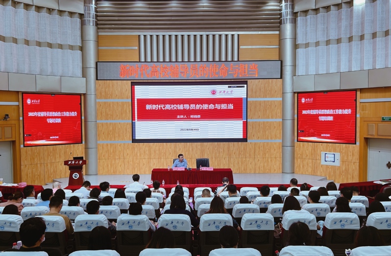 郑部长以今年九月成都全城因疫情“静默”时,辅导员们冲锋在前、服务学生的动人事迹展开,充分肯定了辅导员队伍在关键时刻的“牺牲小家为大家”的奉献精神和“召之即来、来之能战、战之能胜”的战斗能力。接着,他从辅导员的历史沿革、职业定义、职责界定出发,生动阐释了不同历史阶段辅导员队伍的责任和使命,认为辅导员的角色定位应当是政治铸魂、思想引路、人生导航、情感知心。郑部长提出,作为新时代高校辅导员,要始终围绕立德树人根本任务,厚植育人情怀,做有良心有担当的教育工作者;练就过硬本领,做有育人成效的教育管理专家;深怀仁爱之心,做亦师亦友的人生导师和知心朋友。郑部长强调,辅导员在日常工作中还要正确处理好三个关系:思想引导工作与事务性工作的关系、学生成长与个人发展的关系、个人分工与团队协作的关系,科学高效地开展思想政治工作,以实际行动诠释对教育事业的忠诚、使命和担当。