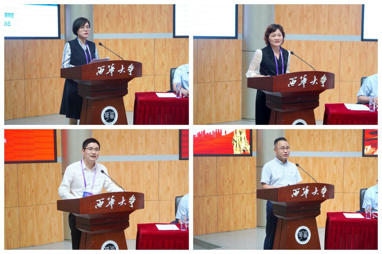 在分享交流环节,西南石油大学、西南医科大学、四川师范大学、成都航空职业技术学院相关负责人,分别作为易班建设示范高校代表、优秀易班共建案例代表、优秀易班指导教师代表、优秀易班辅导员代表作交流发言,分享了本校在易班建设上的亮点特色、经验做法。西南石油大学党委学生工作部(处)副部(处)长陈俐宏以“打造四位‘易’体新范式 提升网络育人四个‘力’”为题,介绍了利用易班提升“主导力、战斗力、吸引力、聚合力”的方法;西南医科大学学生工作部部长谭群英以“构建新媒体时代‘一体·三翼·四维’浸润式网络育人体系”为题,介绍了通过易班开展网络思政工作的做法;四川师范大学教育科学院党委副书记、纪委书记卿川以“新时期高校网络思政育人模式探析”为题,介绍了学校易班建设经验;成都航空职业技术学院航空维修工程学院辅导员胡洪志讲述了自己作为辅导员,利用易班开展育人工作的体会和思考。