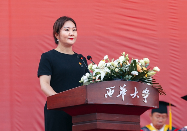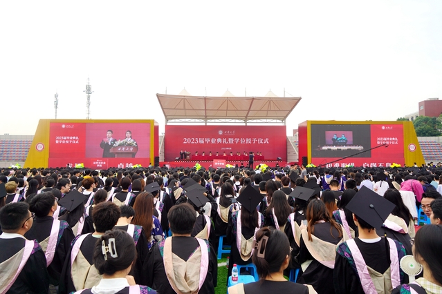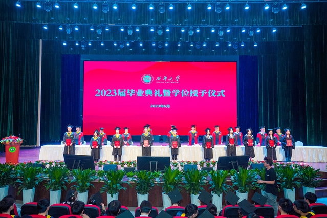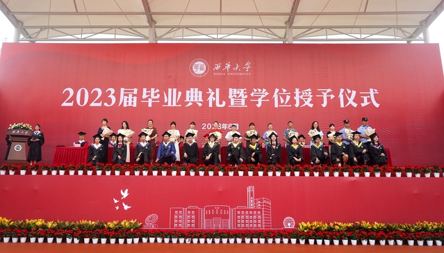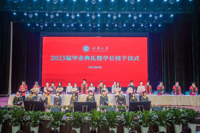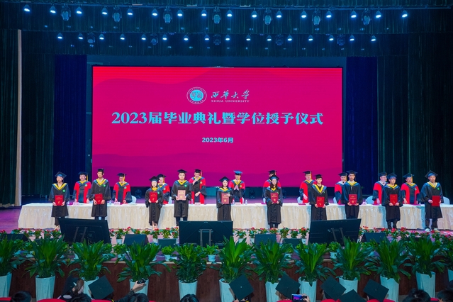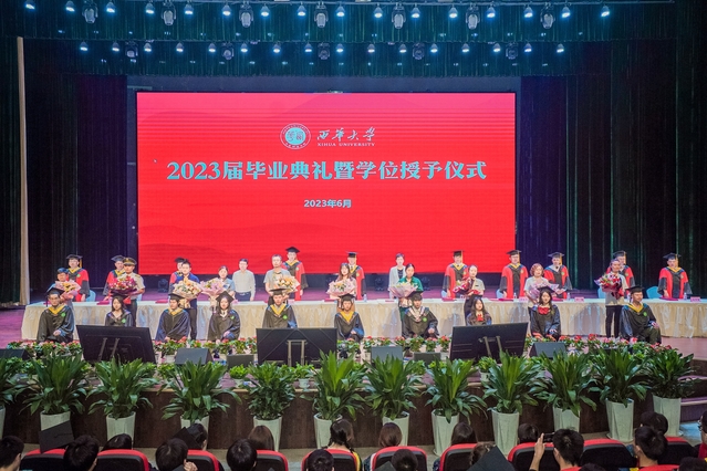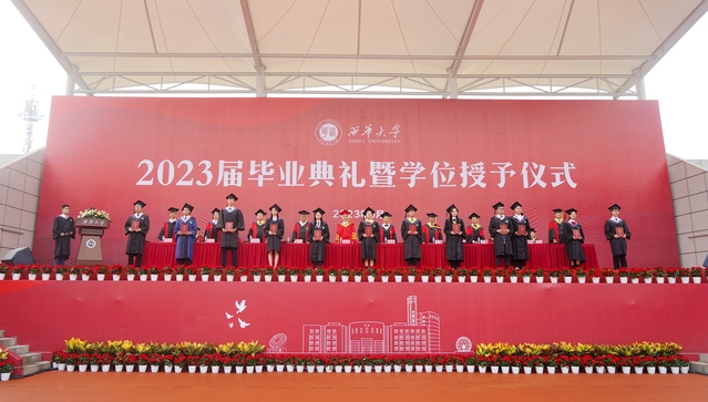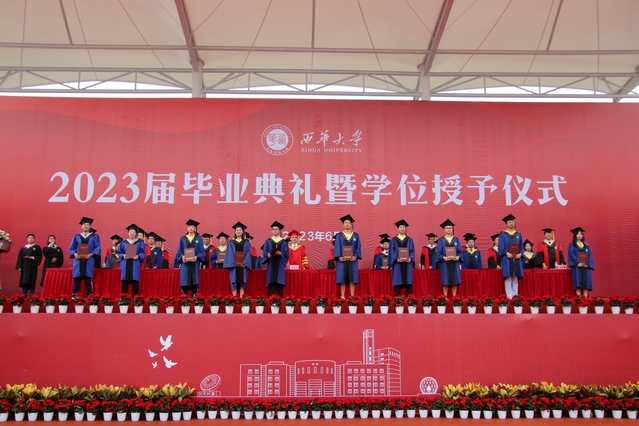 “从今天开始,你们将从西华校园出发,走向充满挑战的人生。你们的肩上有清风明月,更有家国使命。”校党委书记刘树根指出,大家共同见证了新中国成立70周年、中国共产党成立100周年、党的二十大胜利召开等重大历史时刻,一起走过了极不平凡的三年抗疫之路,携手经受住了一场艰苦卓绝的历史大考,广大西华学子在风雨中历练、在奋斗中成长,青春岁月熠熠生辉,共同经历让大家把个人的前途命运、学校的事业发展与民族复兴的伟大进程紧密相连。他勉励青年学子牢记母校的期望和嘱托,不负时代,不负韶华,在青春的赛道上奋勇争先,跑出西华人的风采。