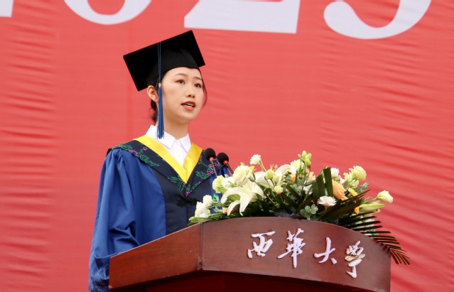 校学位评定委员会主席、校长李秋实以“奋斗青春,梦想启航”为题,向全体毕业生送上临别寄语和真挚祝福。他回顾了2023届毕业生一起经历和见证的重要时刻和事件,细数毕业生在西华求学生涯中取得的骄人成绩,赞扬了毕业生的勇于奉献和责任担当。