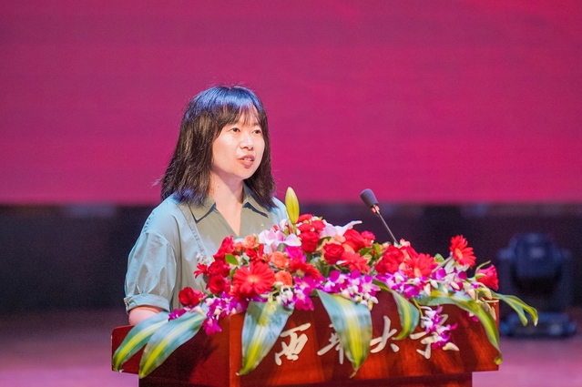 计算机与软件工程学院教授曾晟珂作为教师代表发言。她勉励同学们踏实工作,坚持追求卓越;努力奋斗,坚持终身学习;健康生活,实现全面发展。她表示,毕业不是终点,而是一个新的起点。作为新时代的青年,你们肩负着实现国家富强、民族振兴的重任,希望同学们带着满腔热情,用梦想绘就人生最瑰丽的生命画卷,用奋斗唱响强国建设最壮美的青春之歌。