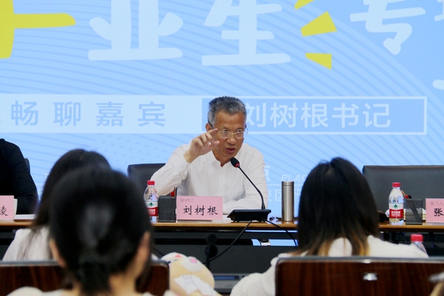 刘树根书记在认真听学生们提出的疑问和迷茫以及对学校的意见建议后,就大家分享交流的有关内容进行了一一解答。他以生动的语言和亲切的笑容,与毕业生们进行了深入交流,现场气氛愉悦而轻松。
